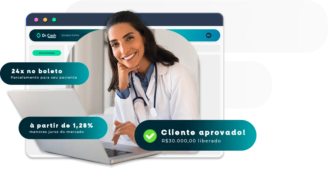 O BV permanece como responsável pelo capital, assegurando solidez, credibilidade e segurança para a operação. A Parcelex, uma startup experiente no mercado de financiamento, cuida da inteligência de crédito, garantindo taxas de aprovação competitivas com baixos índices de inadimplência, o que proporciona maior segurança e previsibilidade para o negócio. Já a Dr.Cash é responsável pela experiência completa, oferecendo uma plataforma intuitiva e um atendimento dedicado às clínicas credenciadas, sempre focada em impulsionar o faturamento da sua base.